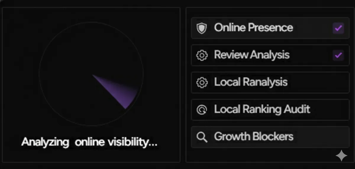 We start with a full visibility audit — analyzing your online presence, reviews, and local ranking to uncover exactly what’s blocking growth and where AI automation can create instant wins.