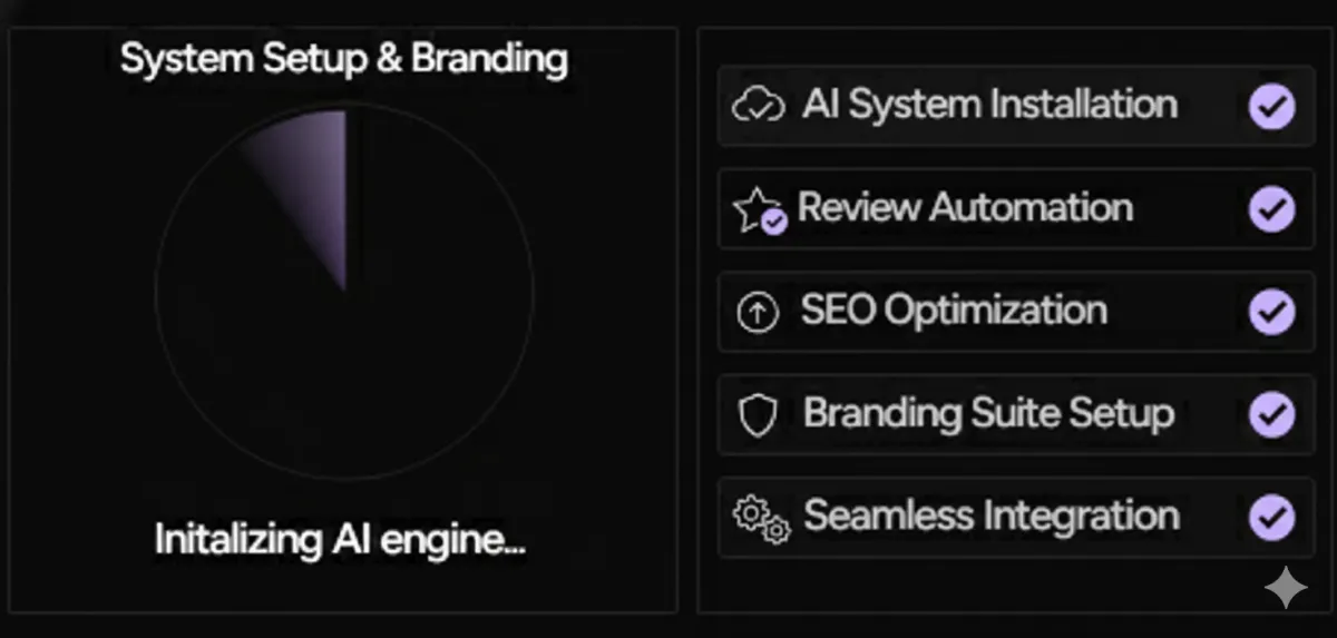 Our team installs your customized AI systems, connecting review automation, SEO optimization, and professional branding tools to create a seamless, done-for-you marketing engine.