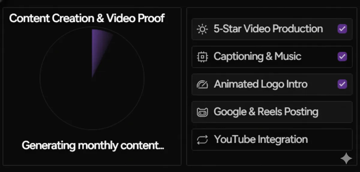Most clients are fully set up within 7–10 business days. Once installed, your system runs automatically — generating consistent video content, monitoring local rankings, and tracking performance.